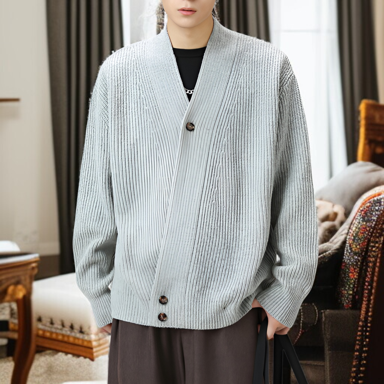 ● 和風レトロデザインが際立つ高級感溢れるニットウェアで、普段着にも特別な日にも上品に着こなせます。